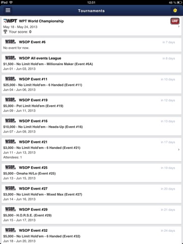 • Score points according to your team results in the biggest international live poker tournaments such as EPT, WSOP or WPT.
