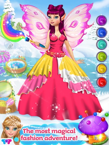 > Drag to design your own amazing fairy clothes with paint, stickers, & buttons to add on!