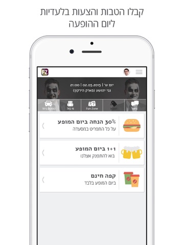 - קבלו הצעות והטבות בלעדיות ליום המופע.