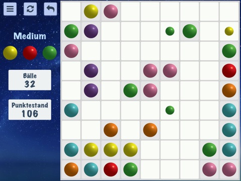 Dieser Spaß und süchtig Logik-Puzzle-Spiel verfügt über ein Raster, das mit bunten Kugeln gefüllt ist. Bewegen Sie eine Kugel pro Umdrehung zu versuchen, eine Linie von mindestens 5 gleichfarbige Kugeln zu machen. Wenn keine solche Linien erstellt werden, werden drei neue Bälle hervorgebracht werden. Wenn das Board füllt, ist das Spiel vorbei.