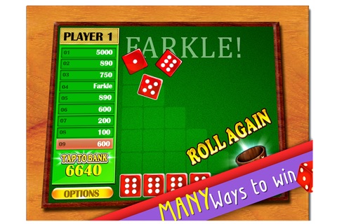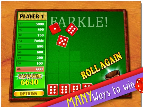 Dont Farkle! fun, family game for all ages. Try and get to 10 000 points for the win.Paid version no ads..