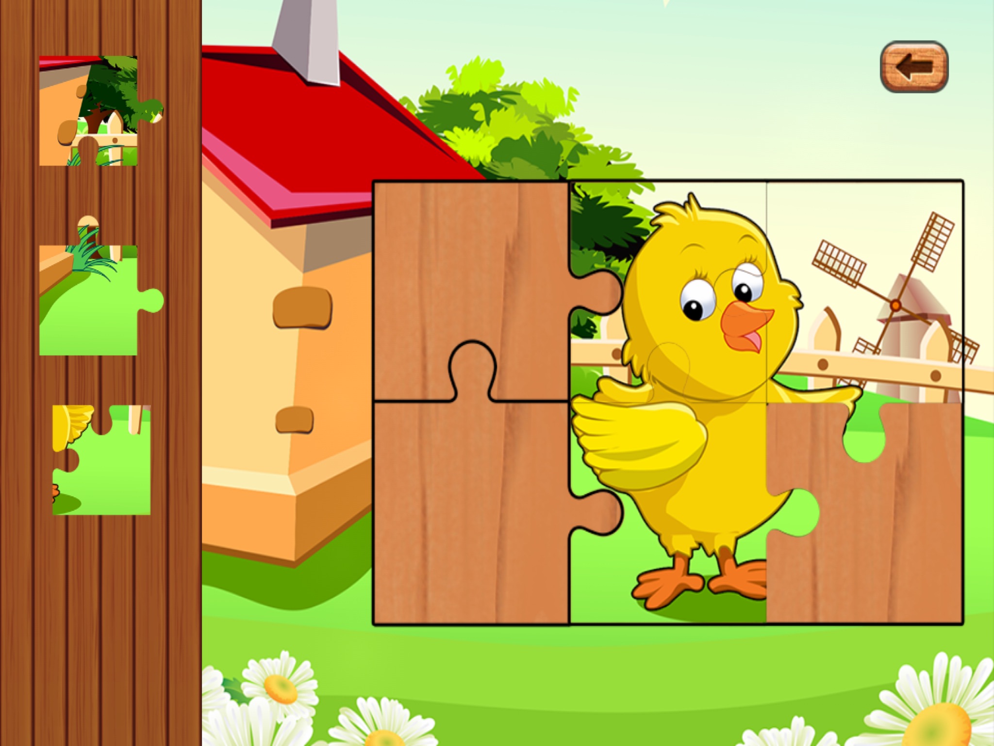 Easy to difficult game levels to help kids match pieces with multiple styles of puzzles (full animals, animal parts and jigsaw).