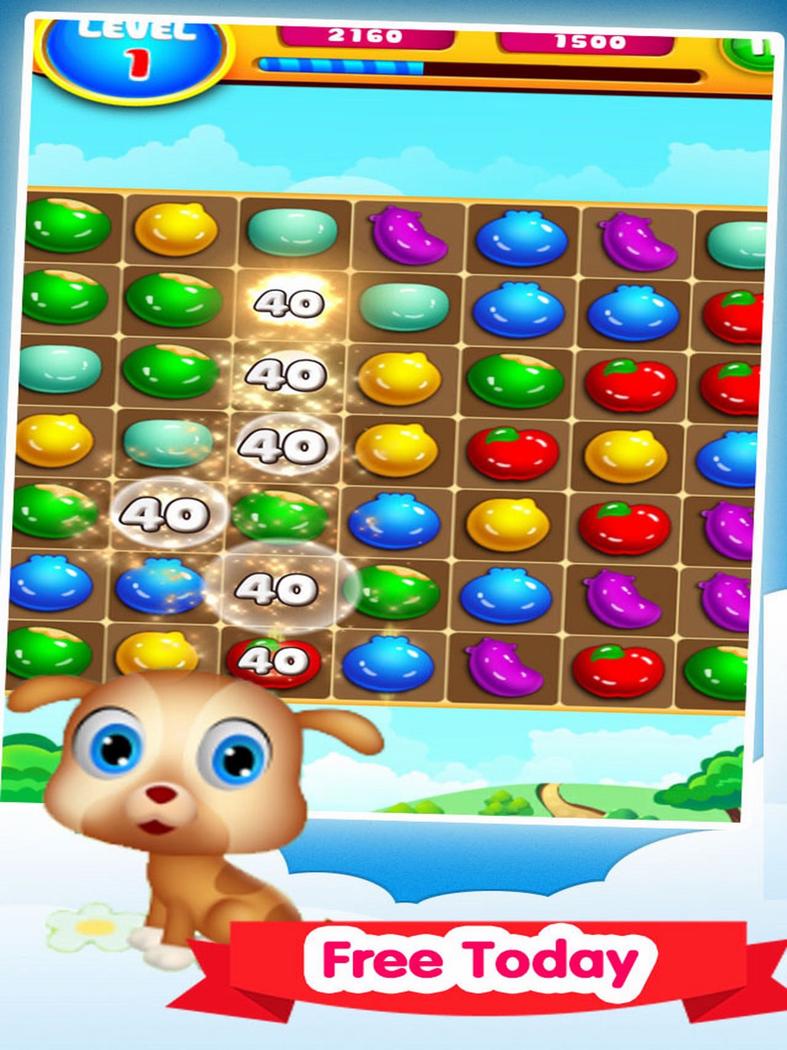 1. Connect three or more same fruits to score points.
