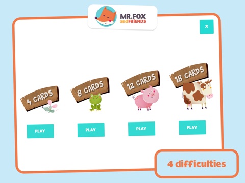 About game: Matching game with 14 fullly animated farm animals in 4 levels of difficulty