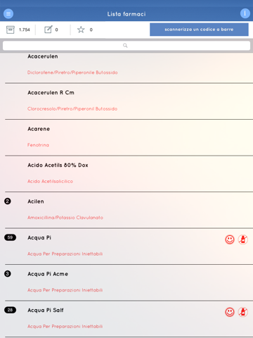 Possibilità di scannerizzare con il telefono o il tablet il codice a barre (formato CODE39 o FARMACODE) per accedere immediatamente alla scheda dettagliata.