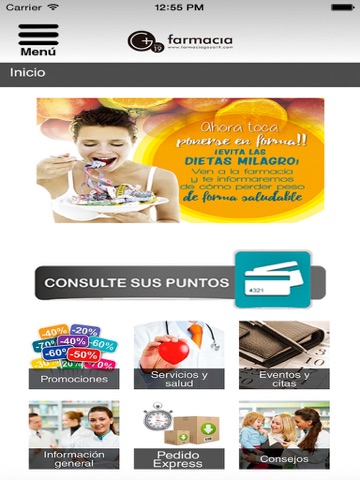 Farmacia Goya 19, Estamos muy cerca de ti. Nuestra farmacia no sólo cuentan con las mejores marcas. También ofrecen servicios que van más allá el asesoramiento profesional. Ven a visitarnos y descúbrelos. A través de la App de Farmacia Goya 19, podrás acceder a toda la información de tu farmacia, desde tu movil podrás consultar promociones, consejos, además podrás acceder a tu historial y ver la evolución de tus pruebas, y para que no te olvides, esta app te avisa de cuando tienes que tomarte una medicación o recoger una receta.