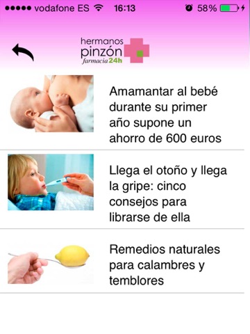 A través de la App de Farmacia Hermanos Pinzon , podrás acceder a toda la información de tu farmacia, podrás acceder a tu historial y ver la evolución de tus pruebas, y para que no te olvides, esta app te avisa de cuando tienes que tomarte una medicación o recoger una receta