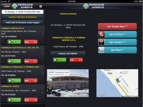 L ho usata oggi, domenica. Ha funzionato al primo colpo e non crasha. Ho telefonato alla farmacia prima di andare per verifica, ed effettivamente sono aperti. Ho fatto circa 10 telefonate prima, senza nessuna risposta usando ricerca su Google. Per me va benissimo.