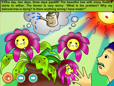 5. One day, two days, three days passes. The beautiful tree with many flowers starts to wither. The farmer is very worry: “What is the problem? Why my beloved tree is dying? Is there anything wrong I have made?”