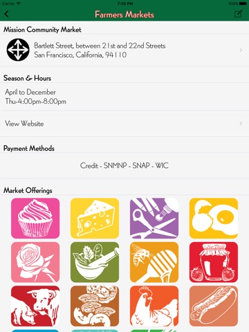 Want or need to find a local farmers market? With the Farmers Market App you can easily locate the nearest farmers market based on your location or a location you are planning to visit.