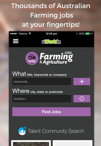 The Farming Jobs & Agri Jobs App connects you to local, regional, project and industry based Talent Communities so you can access exclusive employment opportunities from employers. Talent Communities also connect you to work, education, events, support and information for employment options and career pathways of interest.