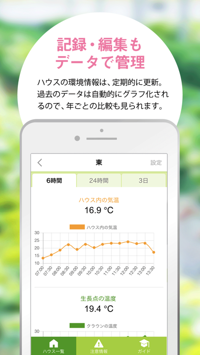 これからの農業には欠かせない、ハウス内のモニタリングアプリです。