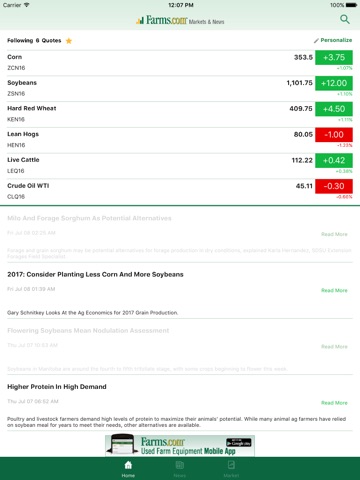 Get the latest agricultural commodity prices and farming news. The Farms.com Markets app provides up to date quotes, futures contracts, charts, and news on your mobile device. Some of the features include:
