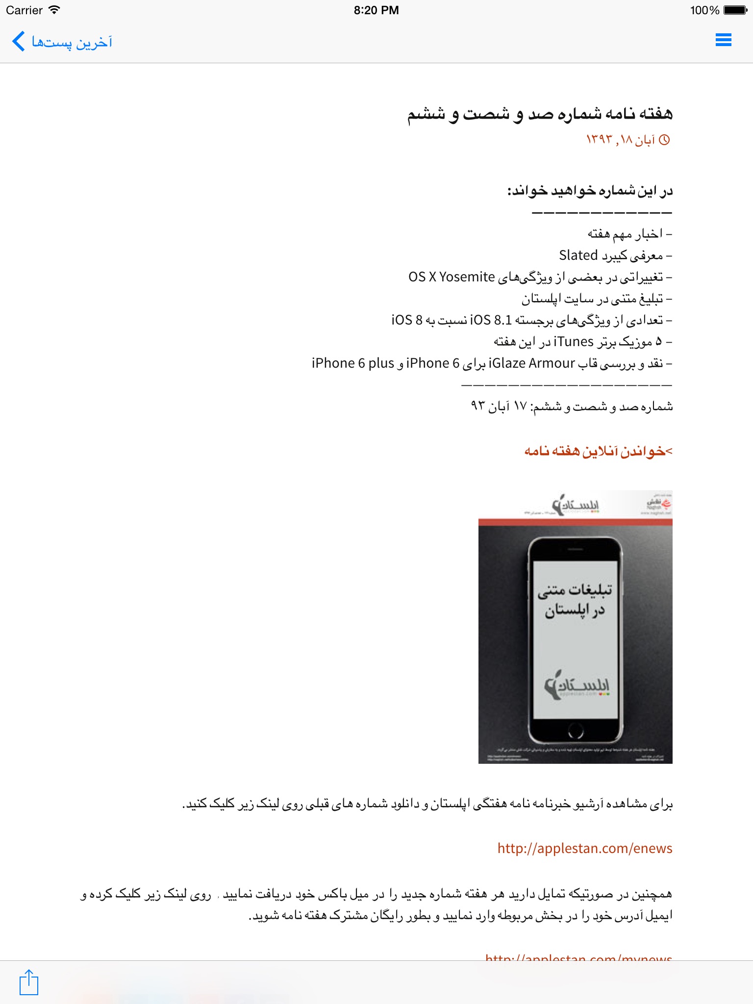 - Instant online access to all the Persian Apple related news, tutorials and reviews