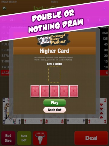 No ads, no mess - just pure poker. The game includes Jacks or Better, All American and more in the most intense virtual poker experience yet. Play video poker wherever you are - your private casino is now just one tap away.