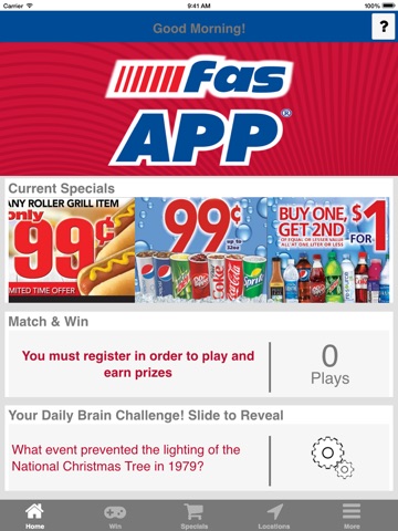 Fas Mart just got faster with Fas APP. Pick up your Fas CASHBACK card, and register it right from within Fas APP to start saving on fuel. Also use Fas APP to get directions, send us feedback, and to access exclusive promotions.