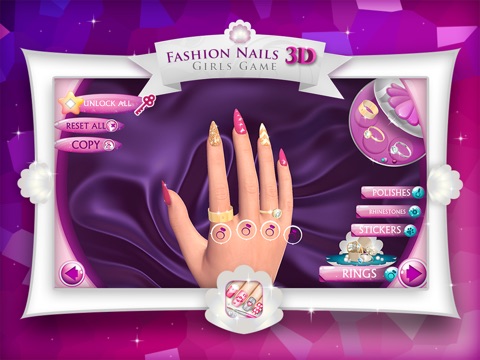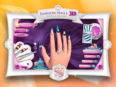** Fashion ladies, get ready for one of the most exciting manicure salon games that will help you take your nail art skills to a professional level. Fashion Nails 3D Girls Game is here to offer you an abundance of beautiful "nail design" patterns and loads of amazing nail polish colors, stickers, decals and rings that youll adore so much.
