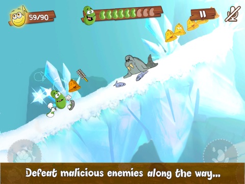 The goal of the game is to navigate the bean throughout the levels from start to end while collecting musical notes and avoiding obstacles and enemies. There are two types of controls, the first being the traditional on screen buttons scheme to make the character jump or dodge. The second however, is unique as it enables players to play the game Hands Free! Yes! Hands-Free by using their voice to make the bean react.