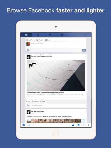 Enjoy Facebook faster while saving your data, battery and storage. Fast Lite for Facebook makes Facebook mobile site run like a native app on your iPhone or iPad with extra navigation tools.