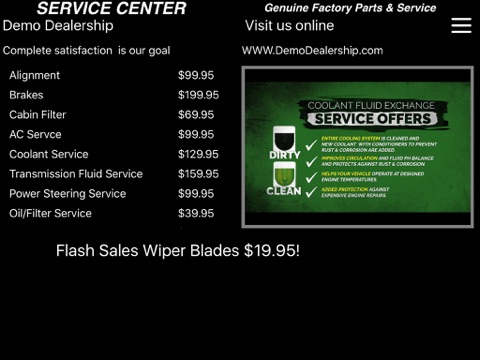 Fast Digital Signs Media Player App is an app that mirrors a screen on an iOS device to create a quick custom digital sign on any LED TV screen. The media player app is highly customizable allowing users to display services offered, prices of those services and a zone on the screen to play MP4 product or service videos and finally a customizable scrolling message is displayed on the bottom of the screen to highlight the users current promotions. The user has a choice of backgrounds and font colors. Custom digital signage made easy by the national business leader in digital signs.