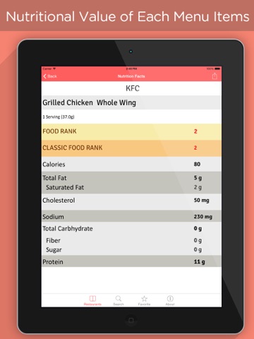 Whether you are on a score based weight loss system or on diet this app provides you with already calculated Nutritions value like calories, carbs ,fat, protein*, sodium* for 1,30,000 menu items of most popular restaurants and fast food chains this helpful guide will empower you to make better choices.