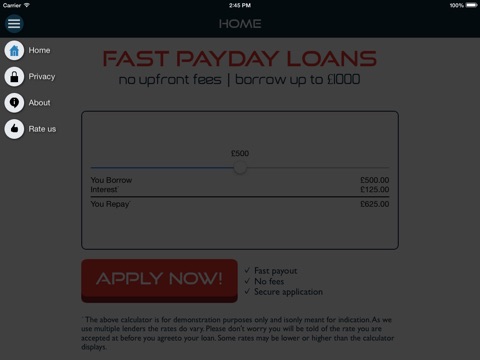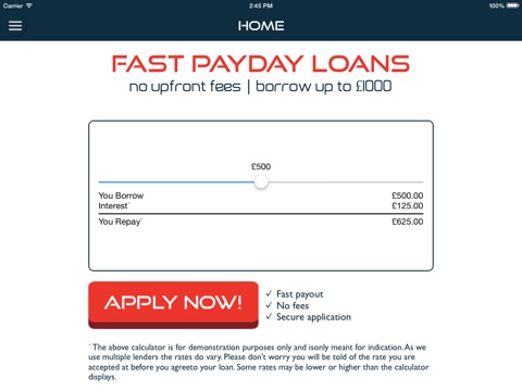 You could borrow between £ 100 and £ 1000 just using this single app. We are working with some of the top lenders in UK. What you need to do is just to fill in our simple form and than our bespoke system will do the job. You will be matched to the lender that is most likely to give you needed cash.