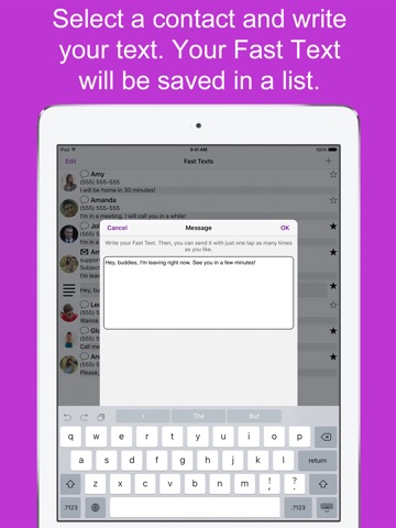 Write them once and send them with just one tap as many times as you like, through WhatsApp, Messages, E-Mail and other platforms.