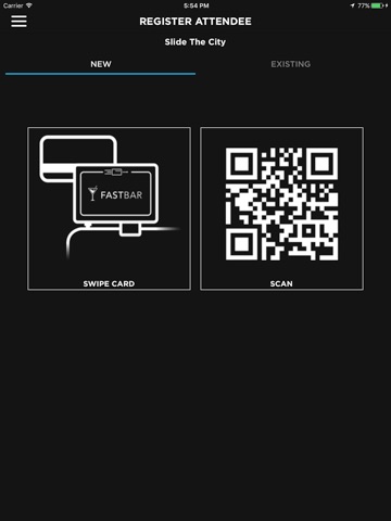You can register attendees either by swiping a credit card, loading cash onto their account, or by scanning their app if they have pre-registered ahead of time.
