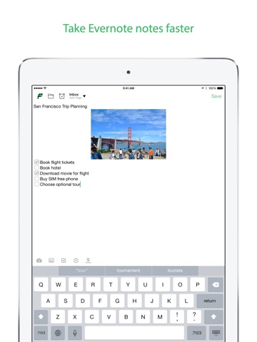 This is the fastest way I have found to get notes into Evernote. The app loads almost instantly and is streamlined to include all of the essentials, and nothing more. Highly recommended for any Evernote power user.