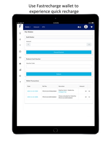 Fast Recharge provide utility bill payment services for landline and postpaid and offering services for different mobile networks such as Airtel, Aircel, BSNL, Idea, MTNL, MTS, Reliance (GSM / CDMA), T24, Tata docomo, Tata indicom, Videocon and Vodafone. Top-up quickly anytime anywhere using our recharge app without any extra cost. FastRecharge provide easiest way to fast recharge your prepaid top up of mobile, DTH and datacard online using your credit card, debit card, net banking, mobile payments, pay through mobile and all your transactions are safe and secured and faster with SSL certified. Also you can check recharge plan, top up, full talktime, 3G and 4G plans from our app.