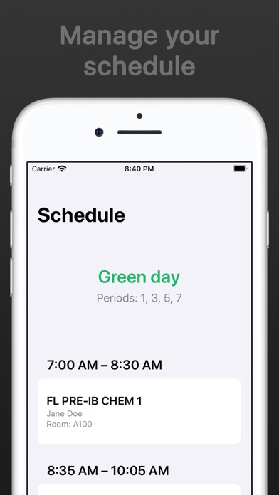 View your classes for a specific day (depending on whether or not your school uses a block schedule).