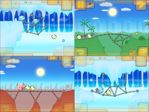 The Fat Birds have gotten themselves into some serious trouble. At first, they utterly disregarded their flying lessons, and now the evil mastermind Mad Hamster managed to destroy their airship! How can you help the Fat Birds? You simply have to build some bridges, that are substantial enough to withstand the birds’ weight! This is the only means of overcoming all this hazardous wilderness together. You’re about to embark on a trip to the Red Desert, the Caverns of the Eternal Night, the World of Snow, the Caves of Ice, and last but not least — the Everburning Tropics. All the best of luck!