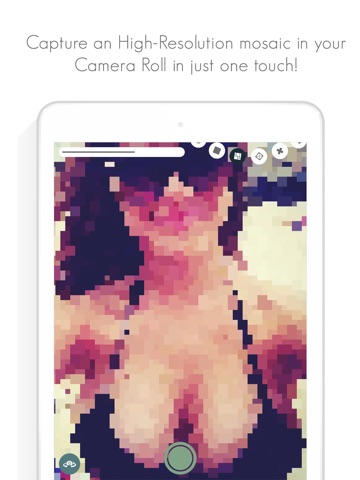 The size of the mosaic tiles can be adjusted interactively; simply pinch the screen! Using a thin pixel size, details will be shown while you can create some artsy censored-like images using really chubby pixels.