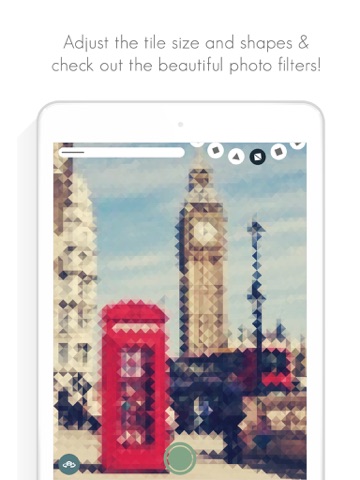Through an incredibly responsive camera view, Fat Lens shows you a Mosaic version of your surrounding.