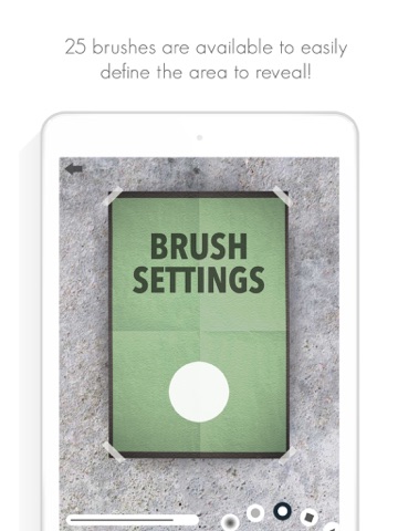 Once happy, press the shutter button to capture a Mosaic picture. However, it doesn’t stop there! You will get the opportunity to reveal or highlight regions of the image by showing the original fine pixels. That can be done by drawing using your fingers in the Editor view. Fat Lens comes with 27 different adjustable brushes, you are in full control.