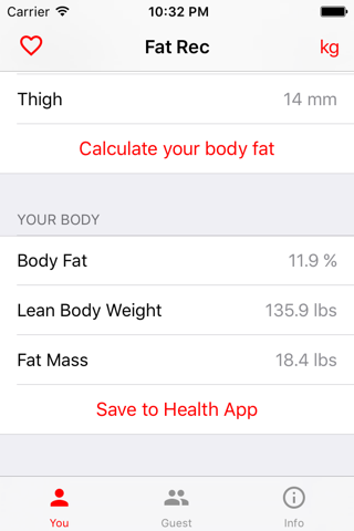 Fat Rec is a simple app that let you calculate and record your body fat. Works like a charm with Health App!