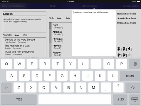 A Folio to help you manage your Fate Core characters. Allows you to create using either the 3 story phases, or just create your aspects and go.
