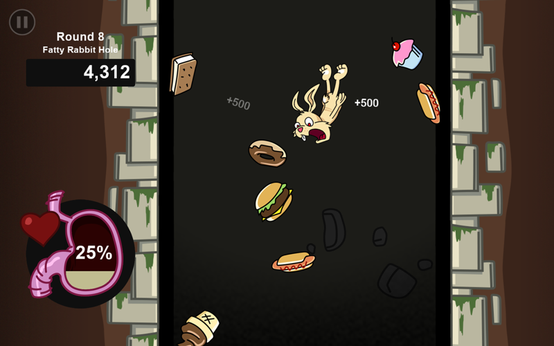 In Fatty Rabbit Hole, youre a rabbit falling down a hole, eating as much junk food as possible. Chowing down on disgusting healthy food, like vegetables, turns your stomach - and if you puke, youll lose progress toward completing the round - so try not to blow chunks!