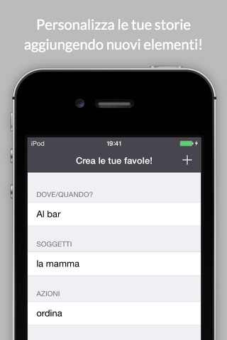 Sarai tu a decidere come creare le tue piccole storie! Parti con le 30 storie realizzate da noi, mischiale una alla volta o scuotendo il tuo iPhone o iPad. Libera la fantasia e aggiungi i tuoi protagonisti in maniera facile e intuitiva.