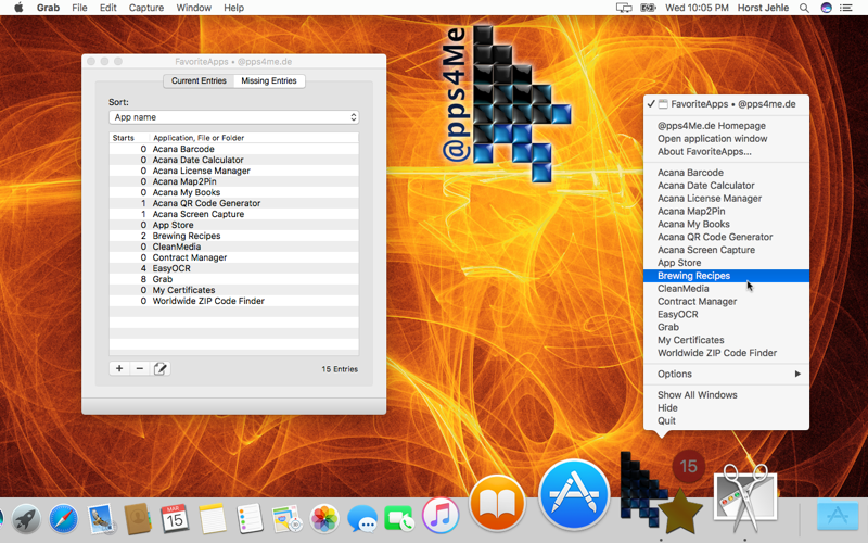 FavoriteApps capable of recording apps. You can use any file they need very often in the window of Favorite Apps drag and thus have quick access to your documents.