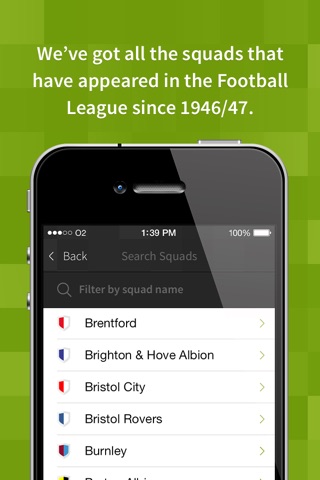 The full version of FBDB contains details about all 37,500 players to have played in the English Premier and Football League since 1946. Search by player name or simply scroll through a team’s squads to find who you’re looking for. If you’re at a game, type in any of the player’s names to see their career history. Turn your phone sideways to see the career in our unique football card format. The data is stored on your phone so no internet connection is required.