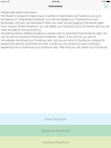 Fbk Eraser is an app that will make easier for you to delete or deactivate your Facebook account.