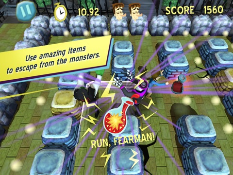 To play, simply swipe your screen and Fearman will run in that direction to collect power orbs, grab items--and run away from the monsters that want to capture him!