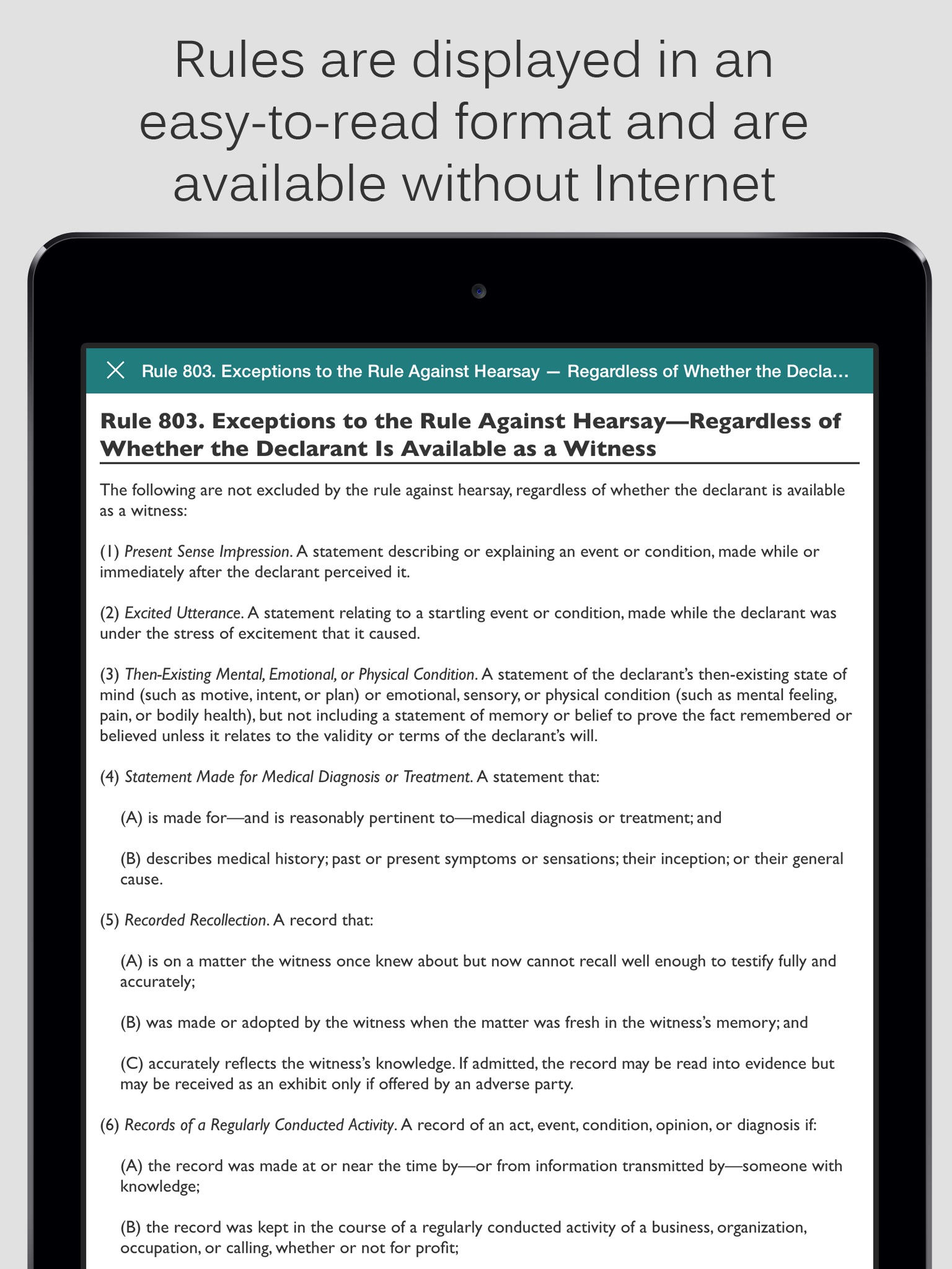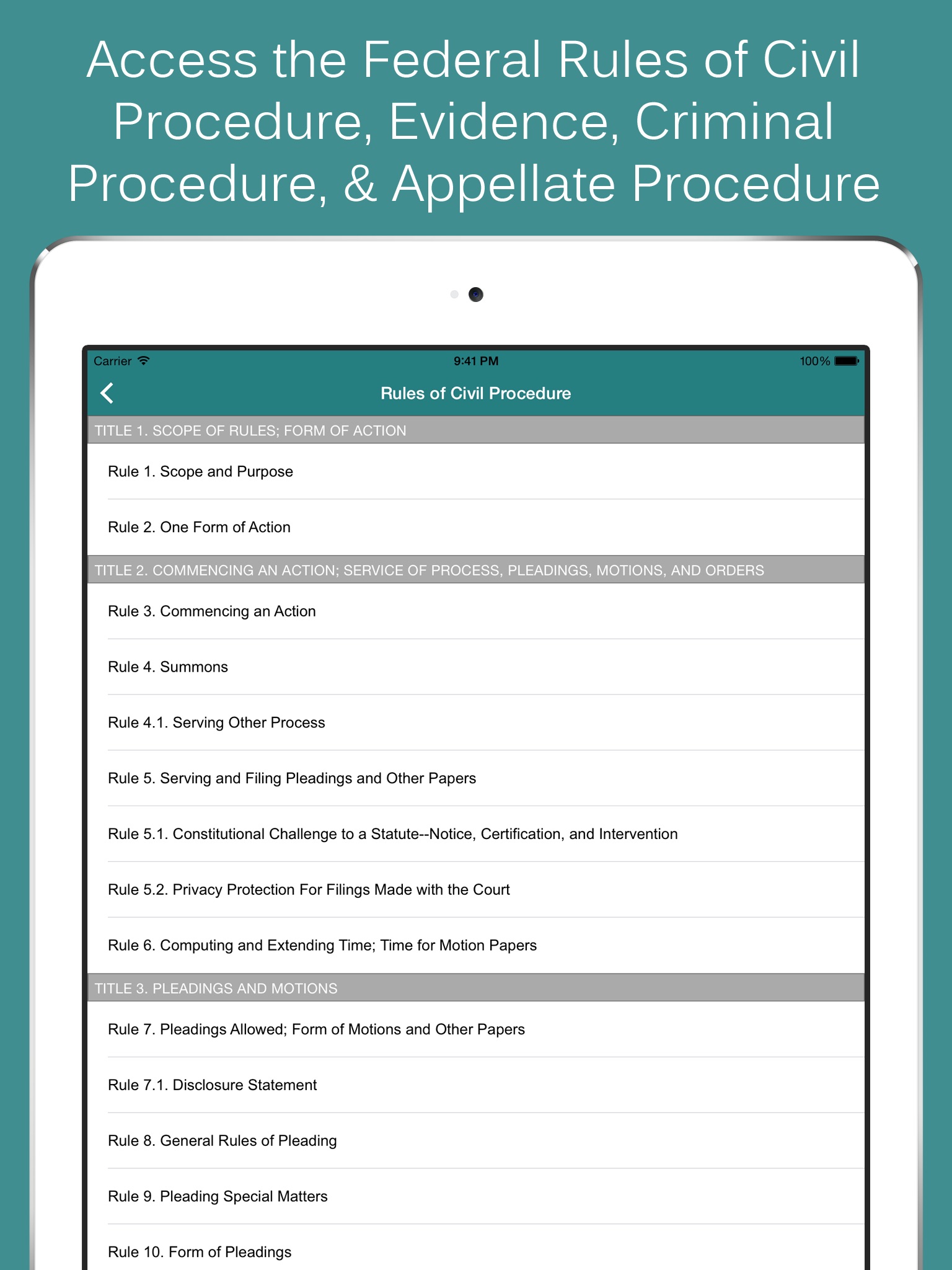 Download now to quickly reference any Federal Rule, stay up-to-date with the latest Federal Court Opinions, and read the latest news from the judiciary.