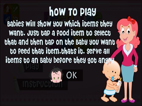 You will earn point if you can feed a baby appropriately, and loose point otherwise. Babies will be asking items more quickly as time goes and they will be more crazy for foods. So as time goes, the game will be harder to play.