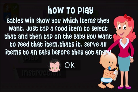 You will earn point if you can feed a baby appropriately, and loose point otherwise. Babies will be asking items more quickly as time goes and they will be more crazy for foods. So as time goes, the game will be harder to play.