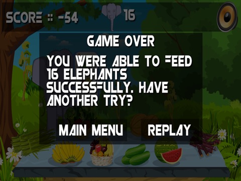 You will earn point if you can feed an elephant, and loose point otherwise. Elephants will be comming more quickly as time goes and they will be more crazy for foods. So as time goes, the game will be harder to play.