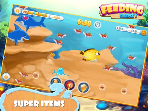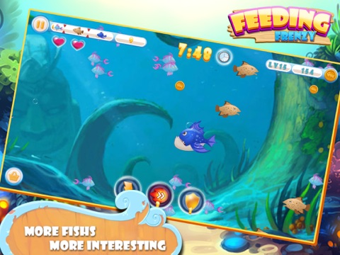 Feeding Frenzy Pro is a simple and fun of fish game free for iPhone. Players incarnate fish and swallow smaller fish to grow. Games amid ocean with beautiful images, sounds fun. Big fish eat small fish bring relaxation minute but no less interesting challenge. Big fish eat small fish to reproduce the classic games on the PC brings a touch of childhood for everyone.