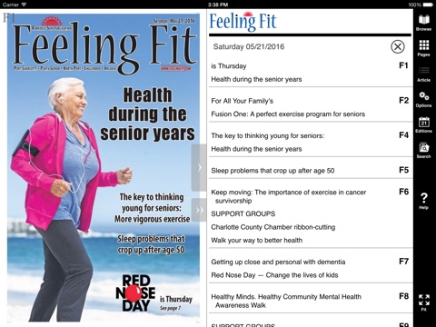 The Feeling Fit app is a replica edition filled with local and national health related news. This app allows you to read everything as it was printed, or click anywhere on the story to read in a text view mode, browse archives and email or share stories to social media sites.