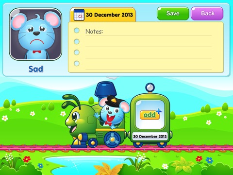 The Feelings Train then shows children how their emotions change over time, and provides parents and therapists with an easy way to keep a record of the context for each reported feeling.